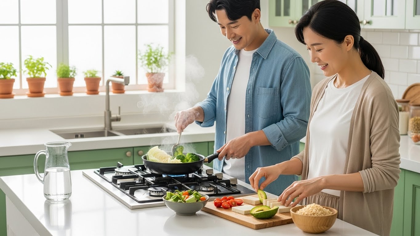 | 음식 선택 | 채소 + 두부 + 현미밥 위주 구성 |