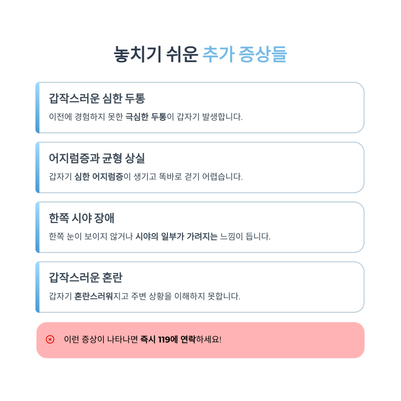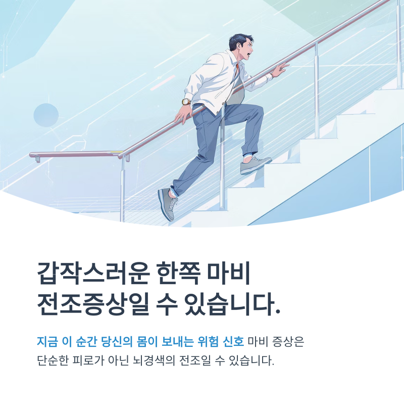 뇌경색은 골든타임(3~4.5시간) 내 치료가 매우 중요합니다. 다음 증상이 나타난다면 즉시 119에 신고하세요.