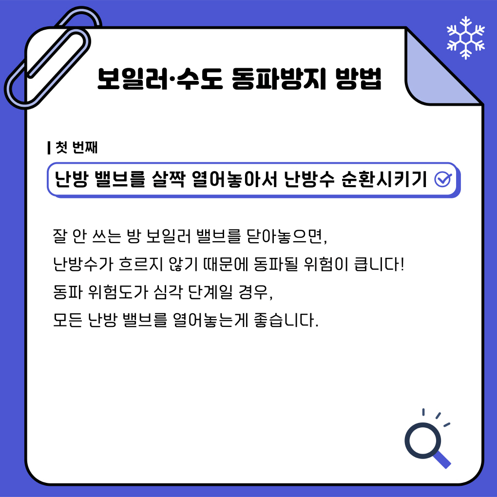 이런 기본적인 수칙을 지키면 동파 사고를 예방할 수 있습니다.