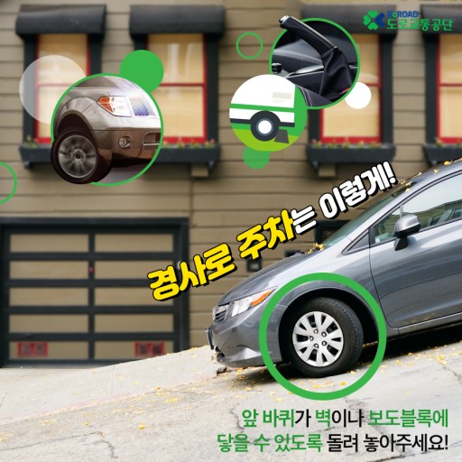 언덕이나 경사진 곳 내리막이든 오르막이든 주차하실 때 사이드 브레이크만 꽉 체결을 해 주시면 아무 문제가 안 생깁니다.