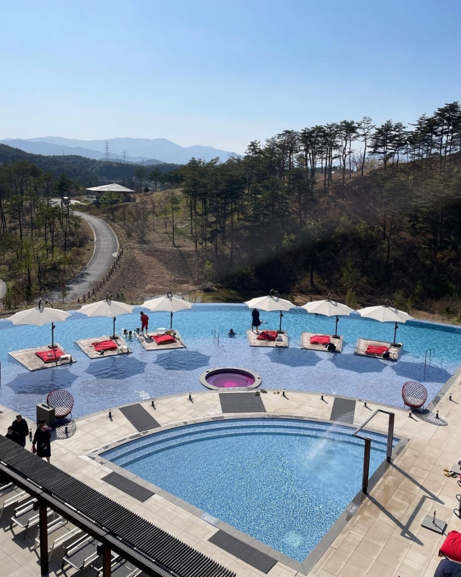 수도권에서 가장 가까운 자연 노천온천 리조트로 10만 평의 자연 휴양림 속에 4,000평 규모의 온천탕이 조성돼 울창한 숲이 뿜어내는 신선한 공기와 완벽한 힐링을 선사한다.