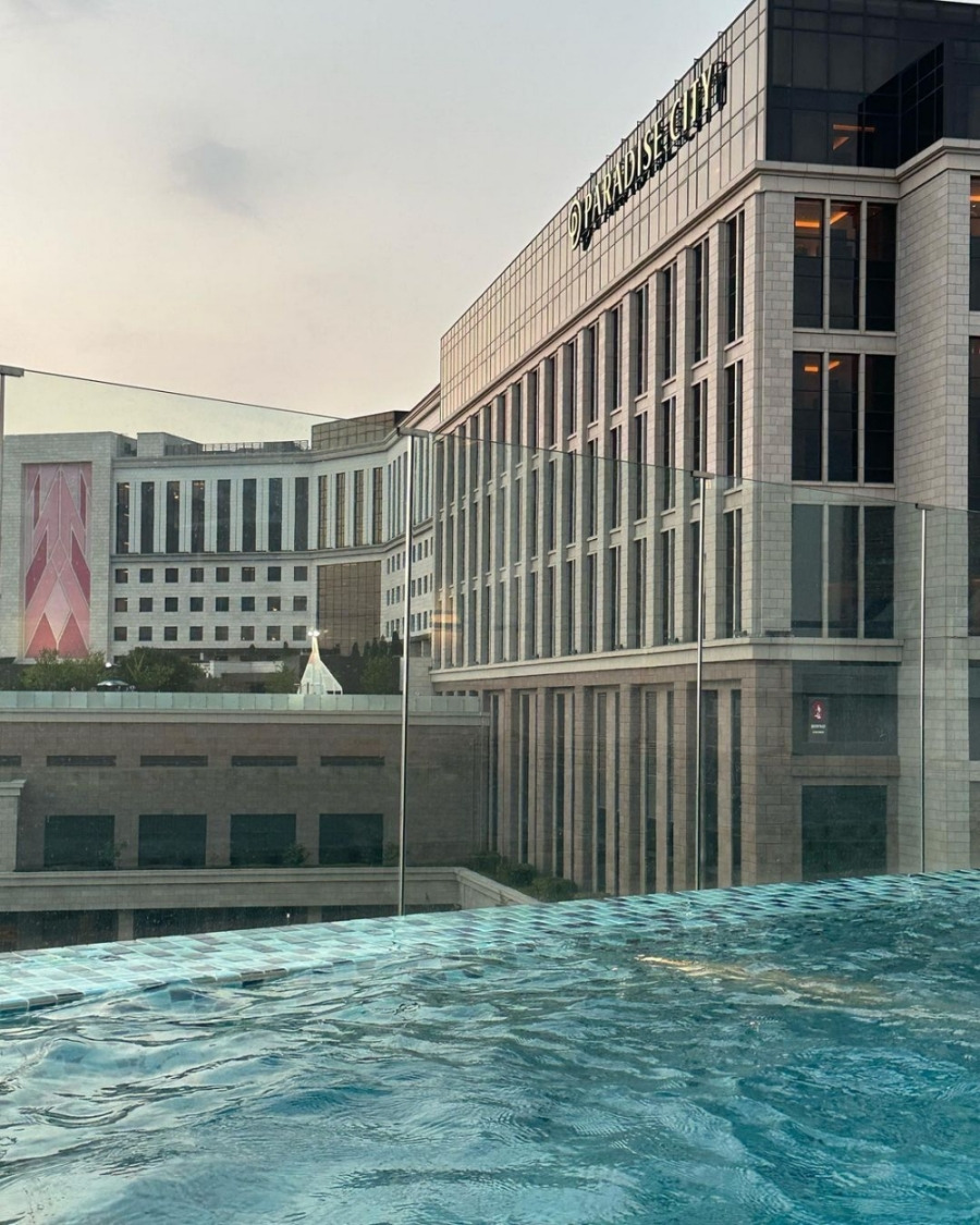 핑크빛 노을과 파라다이스 시티의 전경을 한눈에 즐길 수 있는 야외 인피니티 풀도 있어 인생 샷도 남길 수 있다.