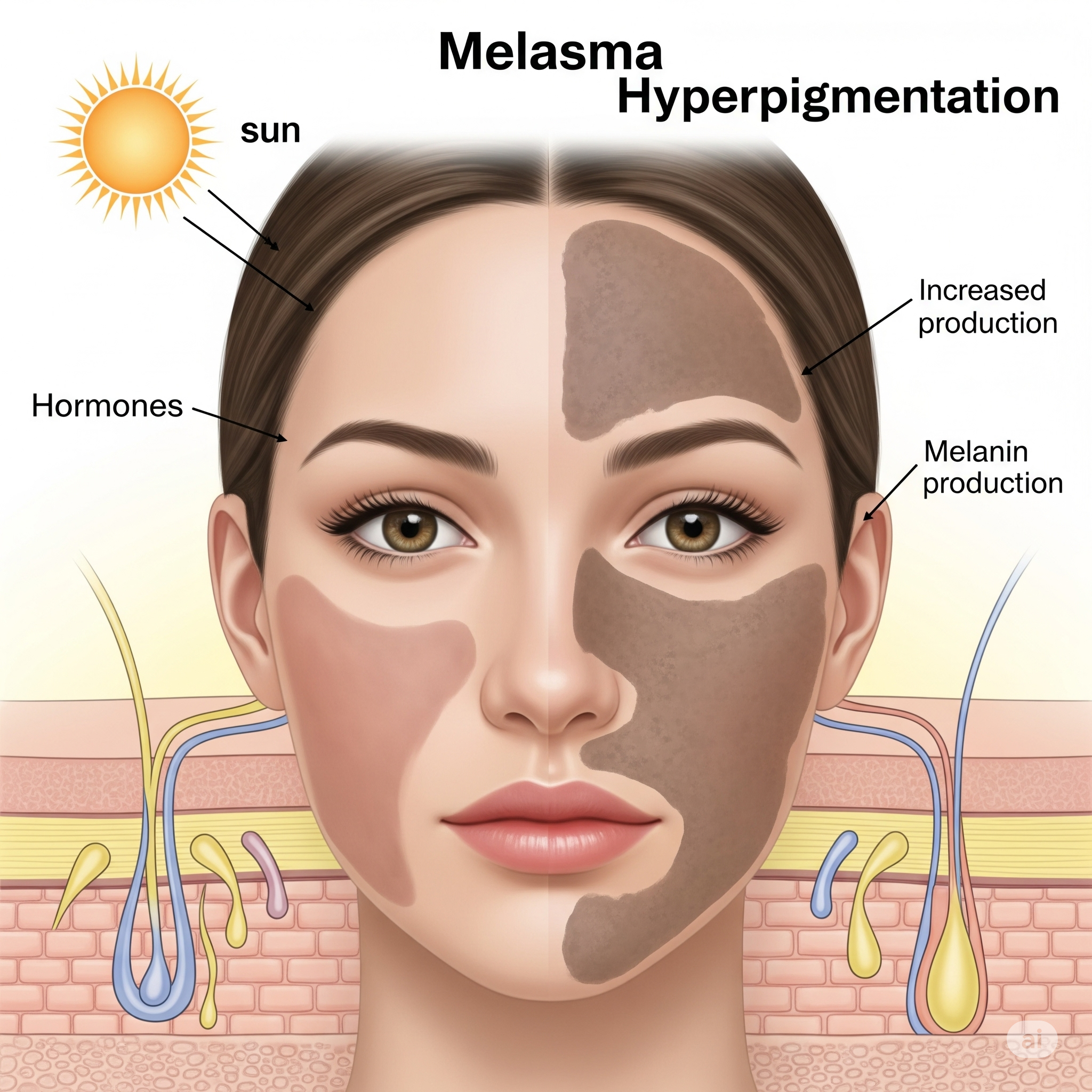 기미의 원인은 한 가지로 단정하기 어려울 만큼 복합적입니다. 가장 대표적인 원인들을 살펴보겠습니다.