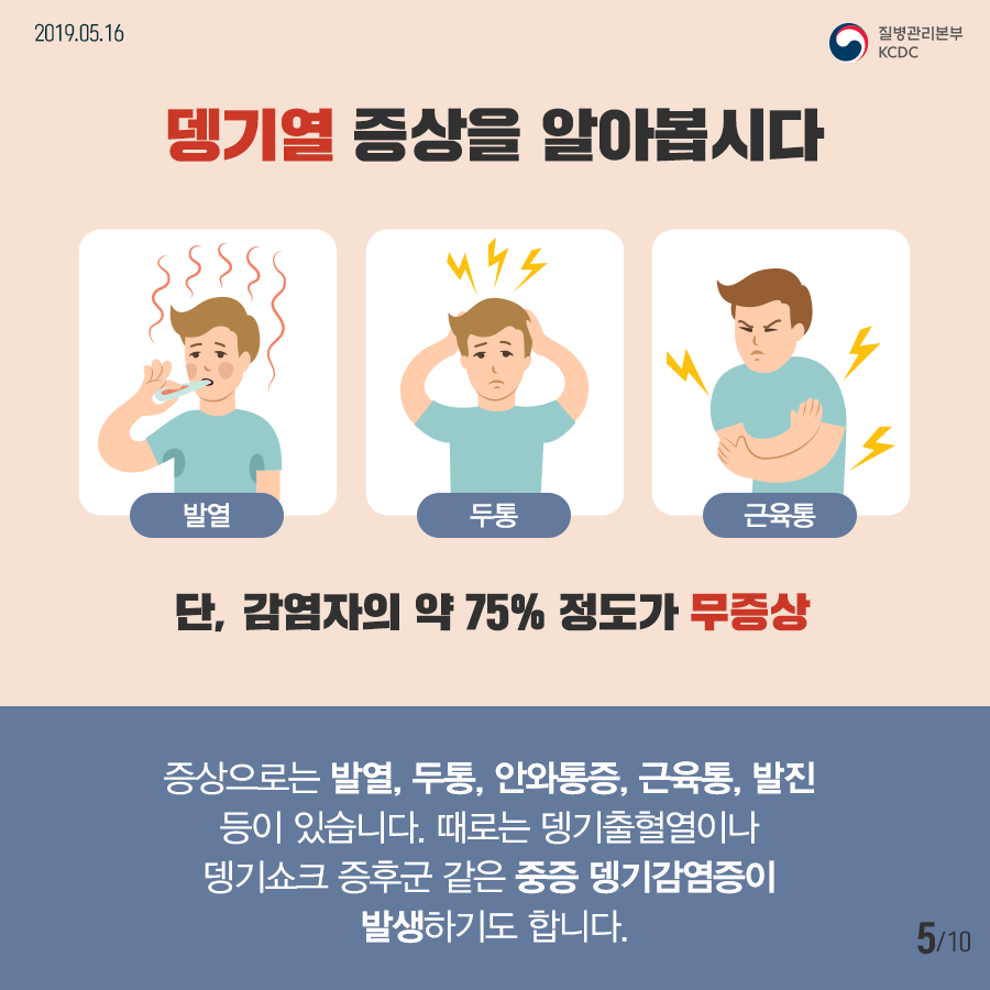 약 75%의 감염자는 증상이 없거나 경미한 증상만을 보입니다. 하지만, 중증 뎅기열로 발전할 경우 심각한 출혈이나 장기 기능 저하가 발생할 수 있습니다.
