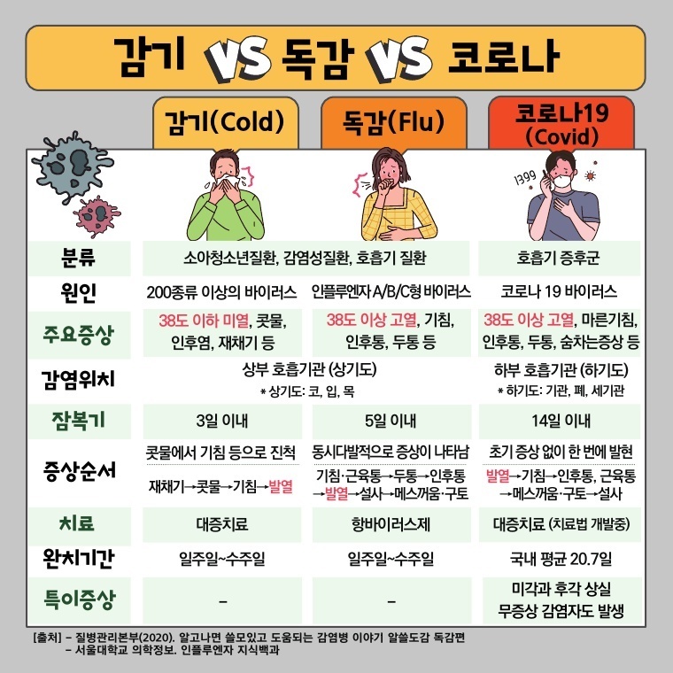 독감과 감기, COVID-19는 모두 호흡기 질환이지만,