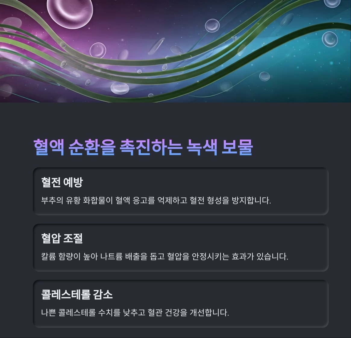 혈액을 맑게 하고 혈관을 유연하게 유지시켜 줍니다.
