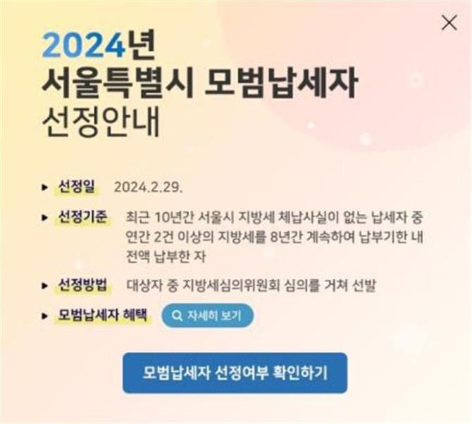 - 모범납세자 혜택 안내 (서울시ETAX)
