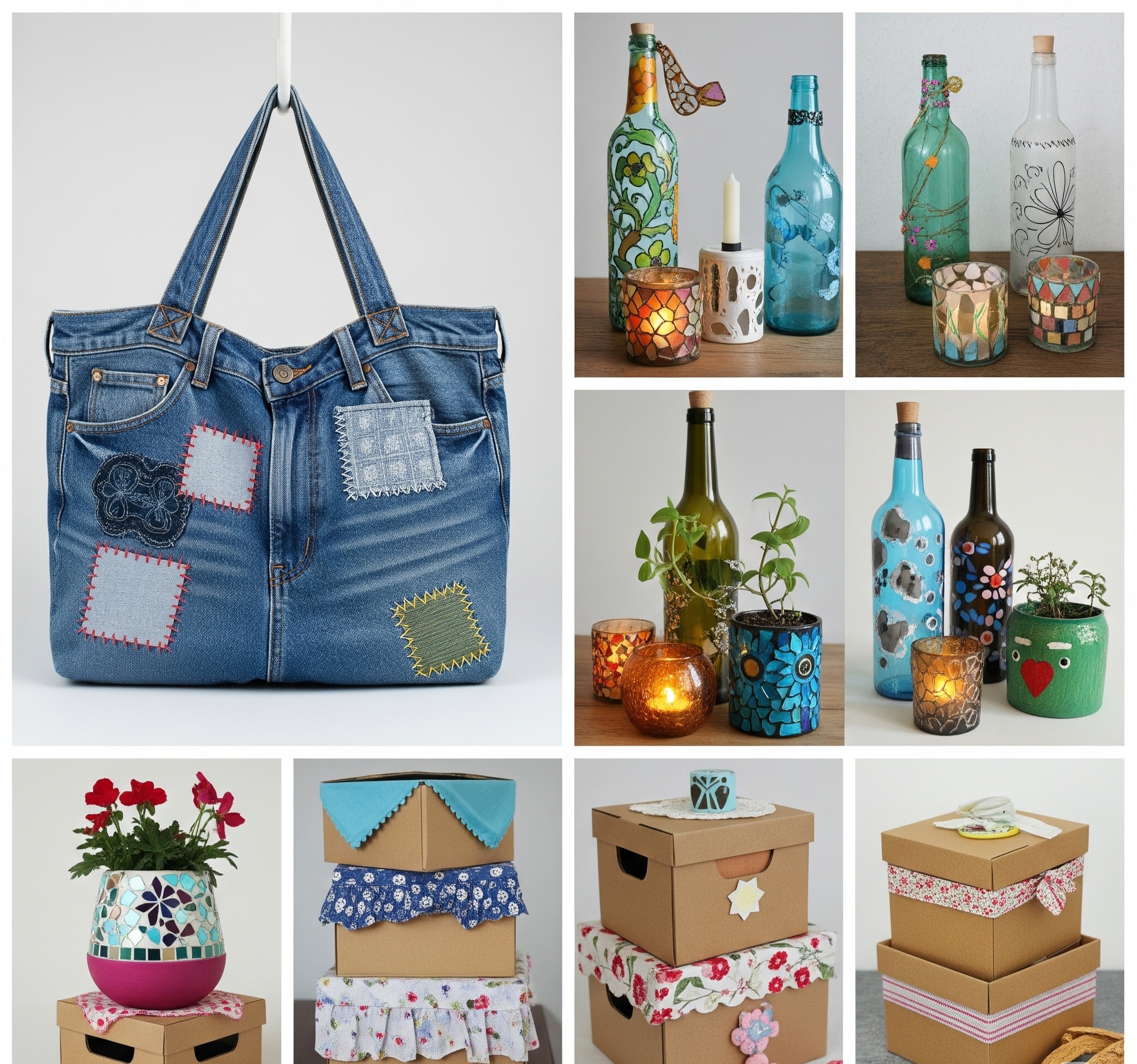 * 패션 아이템 & 소품: 남은 자투리 천으로는 헤어밴드, 컵받침, 연필꽂이 커버 등을 만들 수 있어요. 청바지의 워싱이나 디테일을 살리면 더욱 멋스러운 소품이 됩니다.