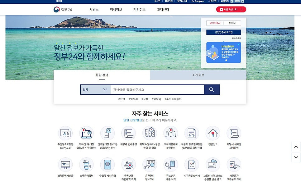 공공보건포털 접속 : e보건소 또는 정부 24 웹사이트에 접속합니다.