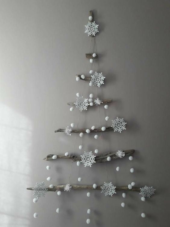 - 나무 가지를 이용한 미니멀리즘 벽트리 : 나무 가지를 이용해 간단하면서도 세련된 벽트리를 만들 수 있습니다. 흰색 눈송이 장식과 작은 폼폼을 추가하면 더욱 아기자기한 느낌을 줄 수 있습니다.
