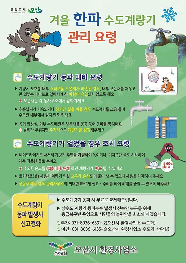 겨울철에는 기온이 영하로 떨어지기 때문에 수도계량기가 동결될 위험이 높습니다. 이를 예방하기 위해서는 몇 가지 방법이 있습니다.