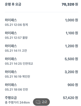 예를 들어, 215km를 주행한 경우, 주행 요금은 36,950원이 될 수 있습니다.