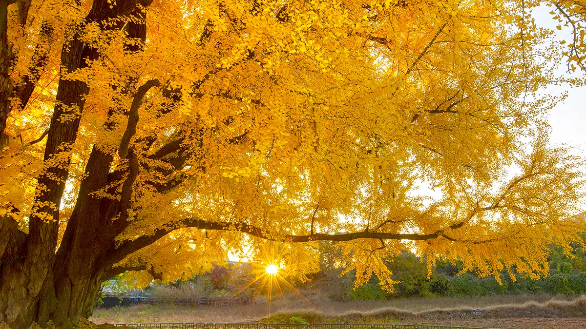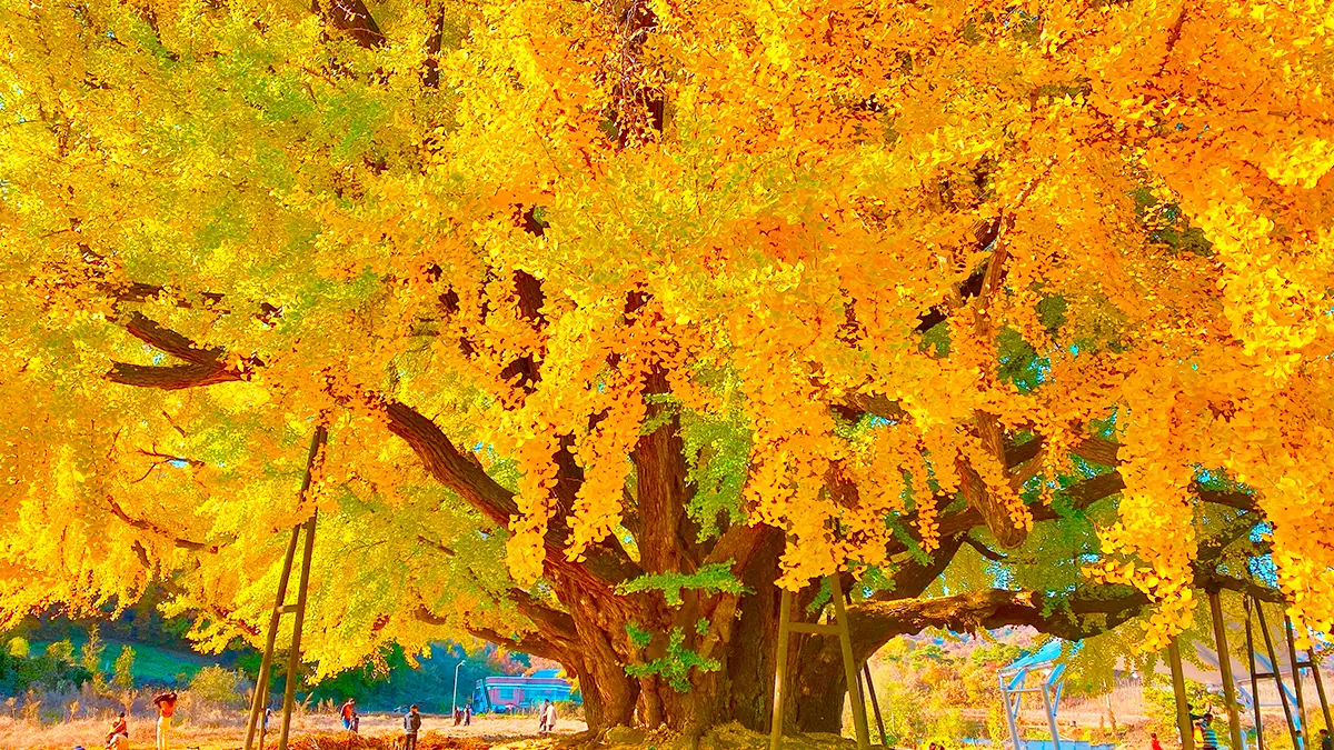 풍경: 넓은 들판 가운데 우뚝 선 거대한 나무가 온통 눈부신 황금빛으로 물드는 모습은 가히 장관입니다. 나무 아래에는 노란 잎이 양탄자처럼 깔려, 방문객들에게 가을의 정취를 온몸으로 느끼게 해 줍니다.