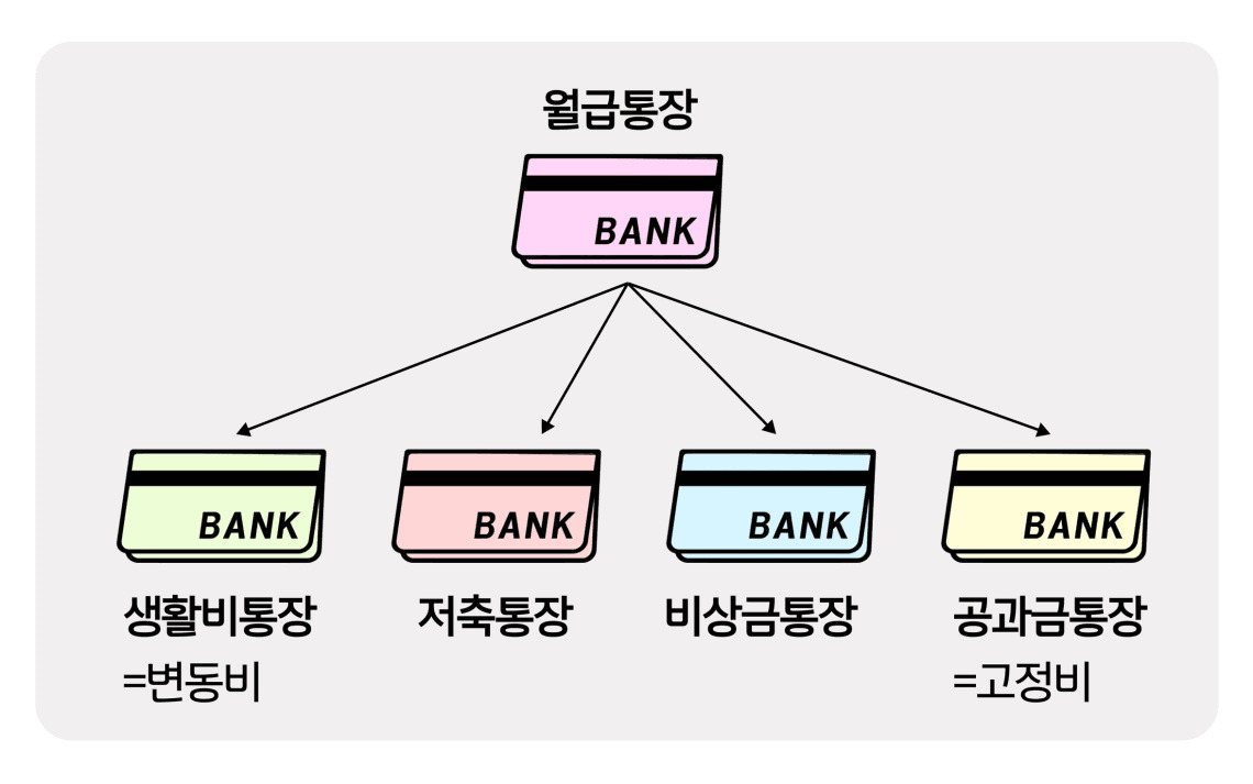 급여 통장, 생활비 통장, 저축 통장, 투자 통장 등으로 나눠 사용하면