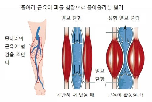 특히 다리는 심장보다 아래에 위치해 있기 때문에
