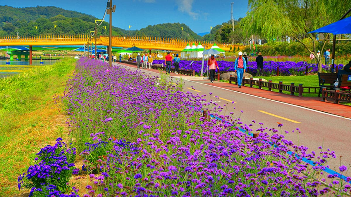 황룡강 가을꽃 축제 보랏빛 꽃 / 사진=장성군 공식 블로그