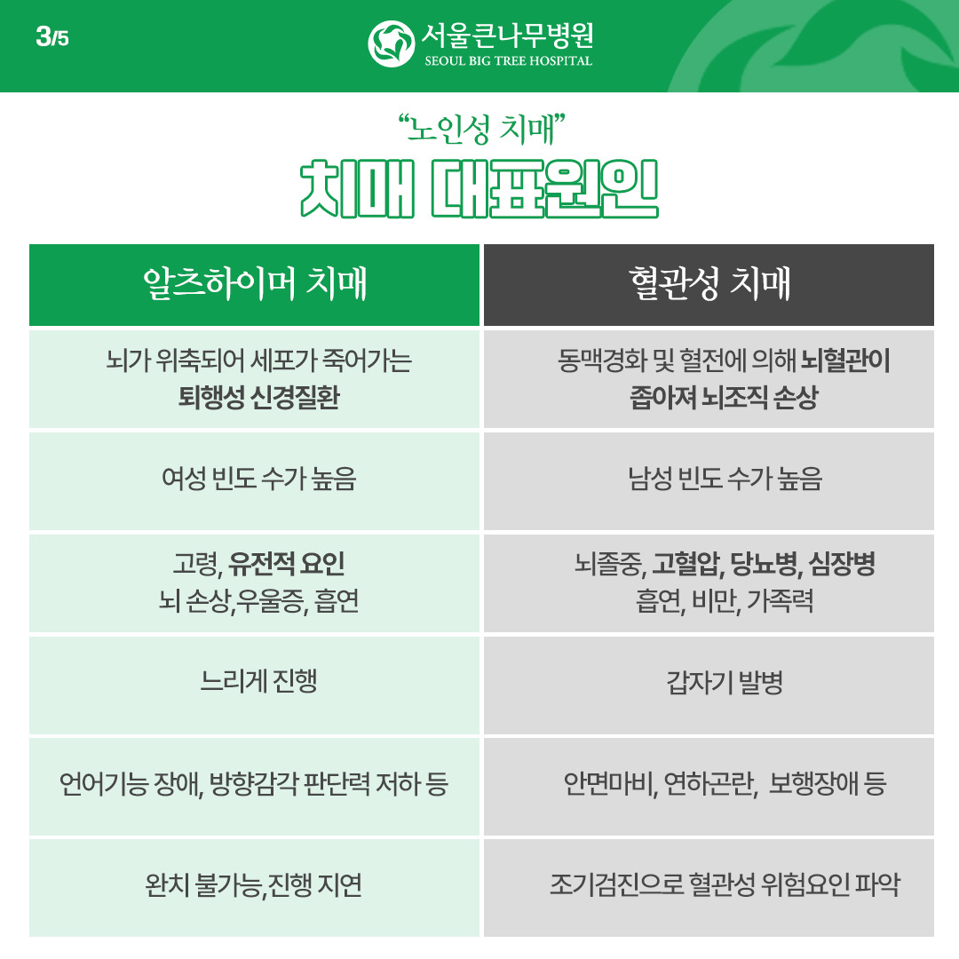 혈압과 당뇨 질환이 있으시다면 치매에 걸릴 위험도가 더 높으니 미리 검사를 통해 치매를 초기에 예방하시는 것을 추천 드립니다.