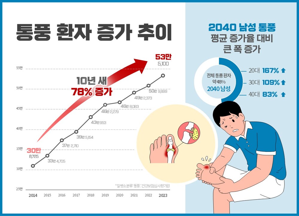 오늘은 최근 점점 환자가 늘고 있는 질환, 통풍에 대해 자세히 알아보겠습니다.