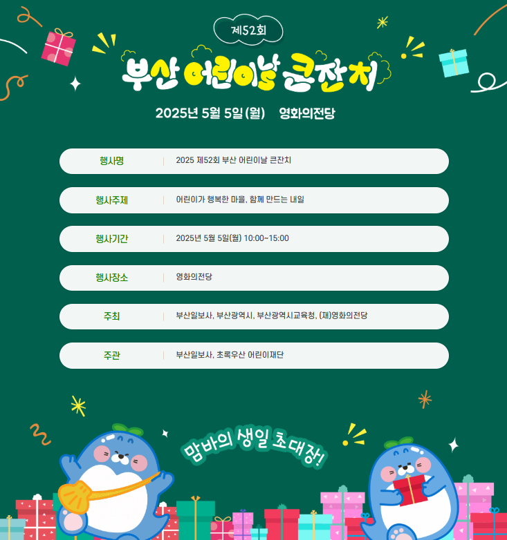 - 부산 어린이날 행사 : 2025년 5월 5일, 52회 부산 어린이날 기념행사