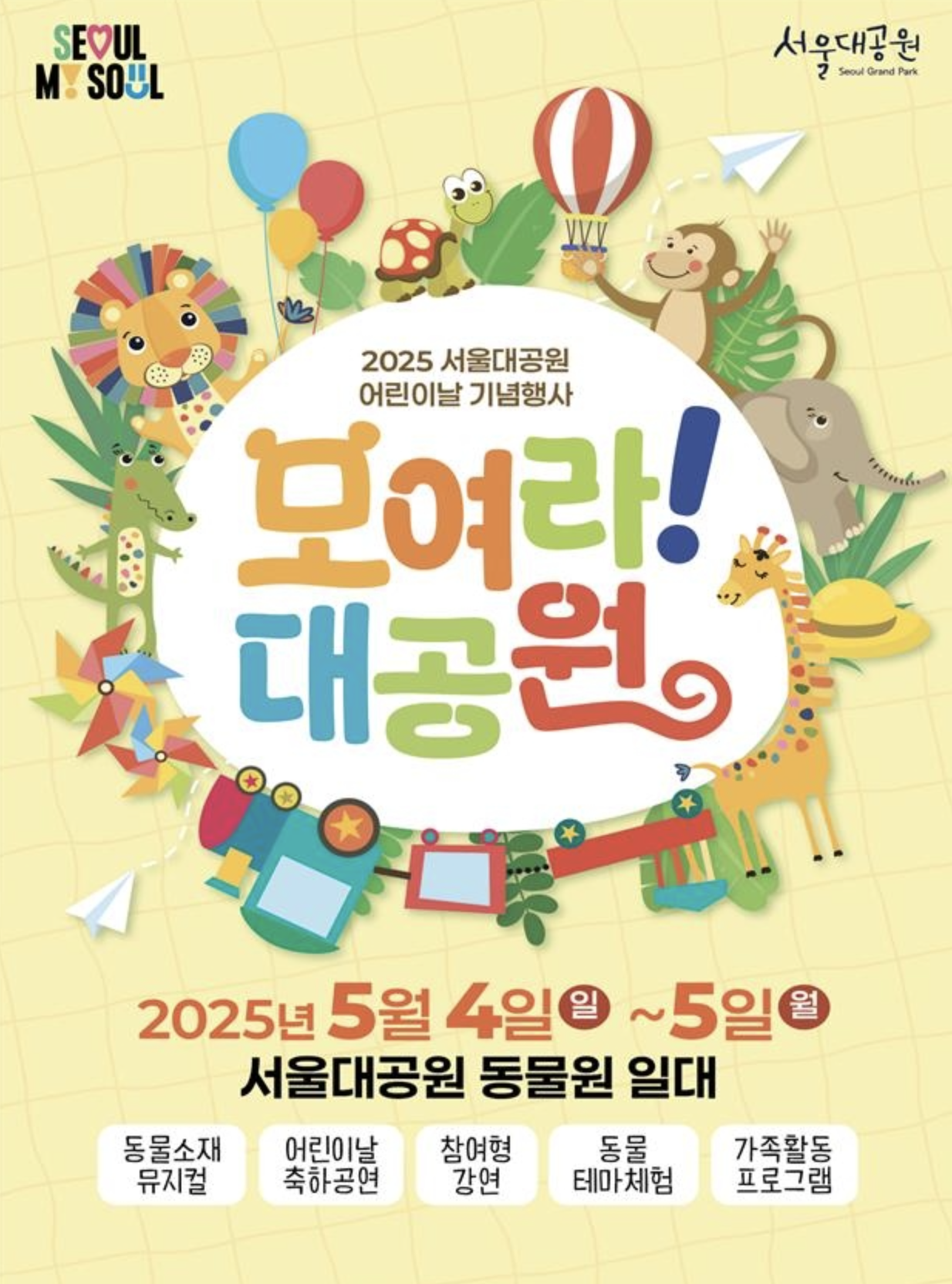 - 서울 그랜드 파크 : 2025년 5월 4일 ~ 5월 5일, 동물들과 함께하는 축제