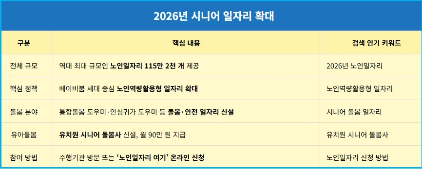 2026 시니어 일자리 확대: 유형별 규모·급여·신청 방법 총정리